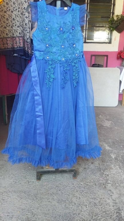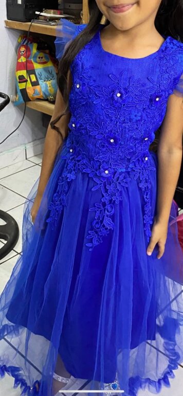 Vestido de niña , para fiesta azul rey con benito y bordados