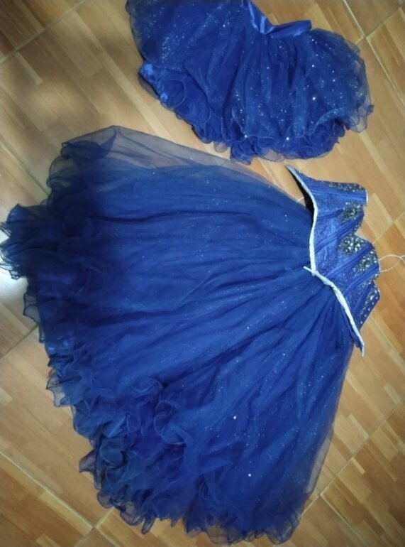 🎀 vestido de fiesta hermoso, con mucha tela de excelente calidad, las incrustaciones van cocidas a mano, el corset todo trabajado con piedreria. Trae una falda adicional corta. Forro y crinolina de tela muy muy suave. Fue hecho por un reconocido diseñador su precio real de 5 mil pesos.