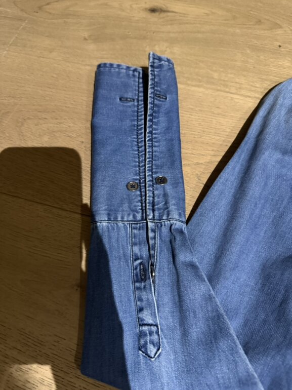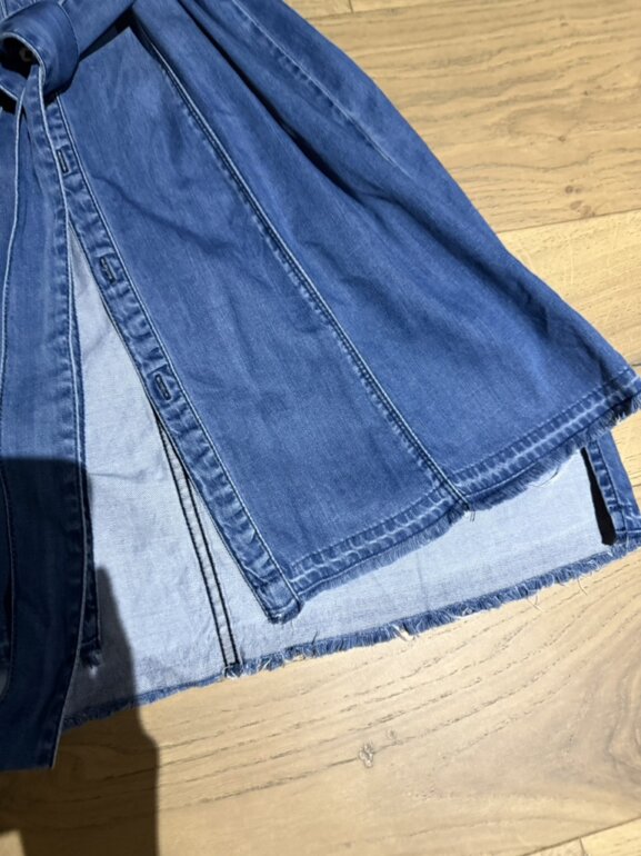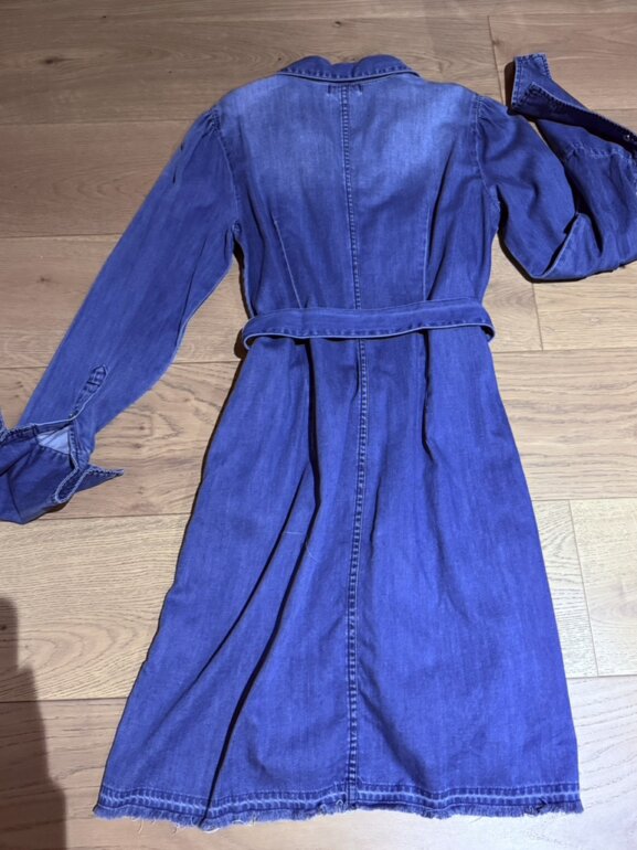 Hermosos vestido para usarse con look bobo, vaquero o informal. Tiene mandas tipo maecuernilla que lo hace lucir espectacular. Las orillas son descocidas por marca