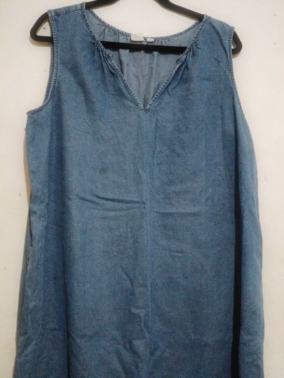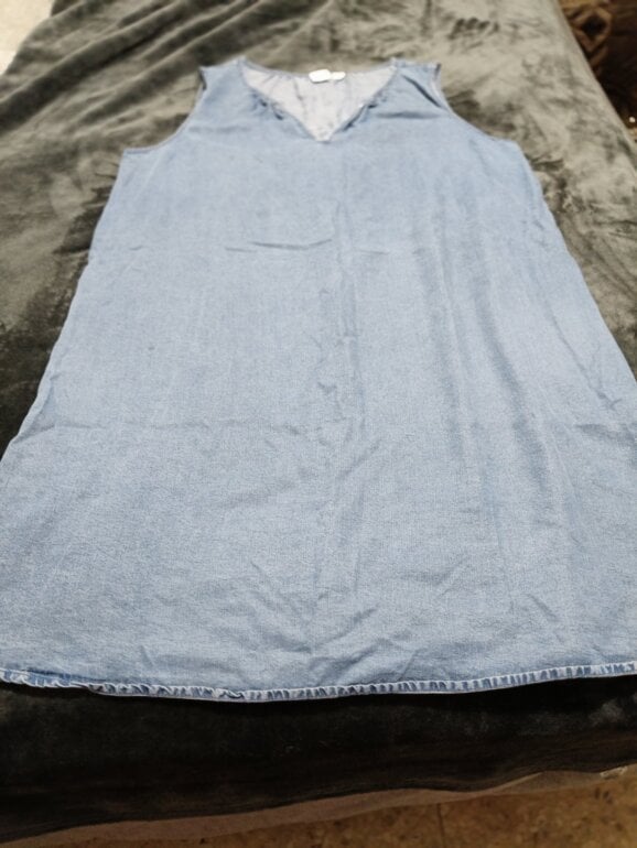 Vestido vaquero - denim azul el color del vestido es como la última foto mezclilla ligera y muy cómodo es XL pero también queda a talla grande