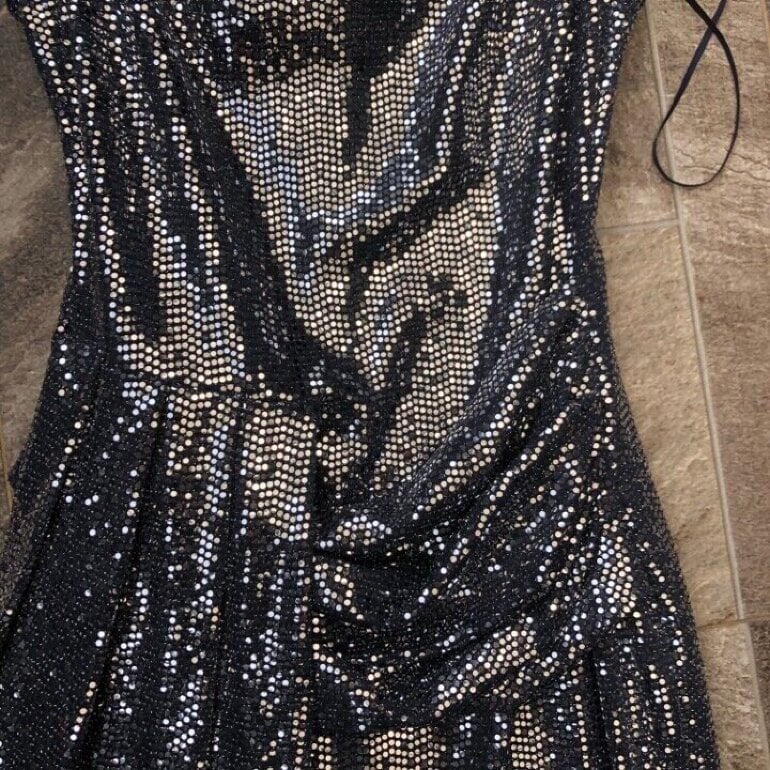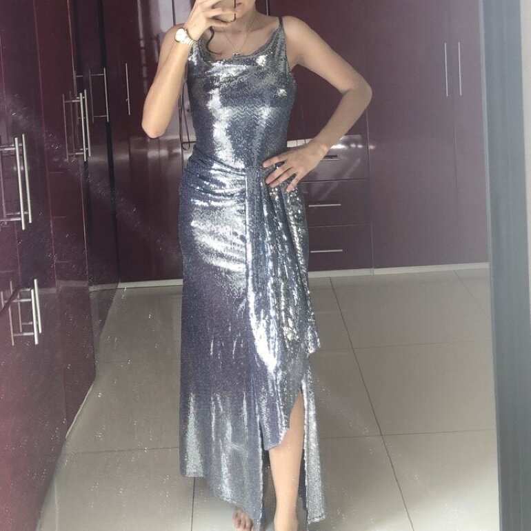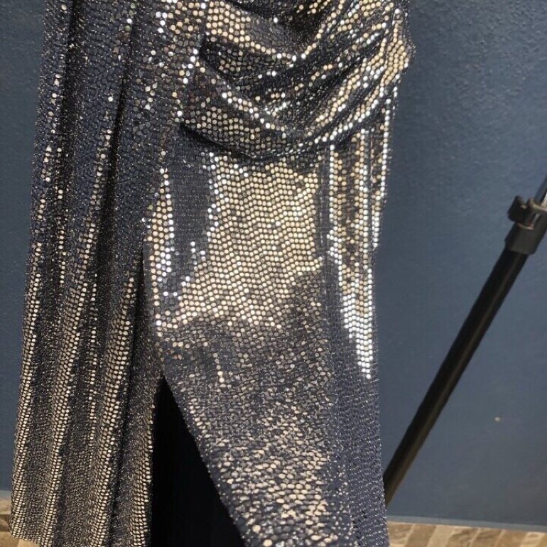 Hermoso Vestido largo de lentejuelas marca Ivonne con abertura en la pierna derecha. Tiene stretch hace una figura increíble.