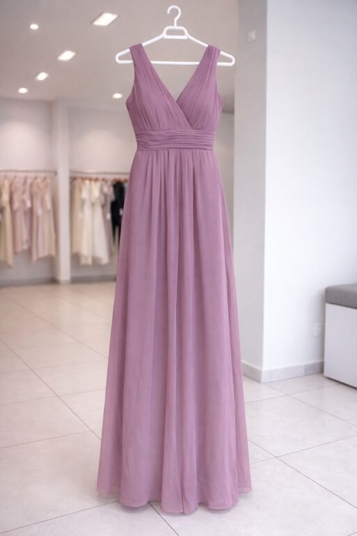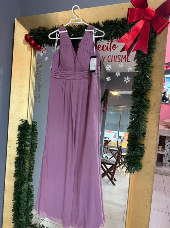 Vestido corte imperio, con grapeado en la cintura y escote V, Caida fluida tela tipo gasa/chiffon. TALLA 13