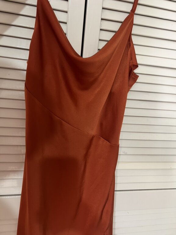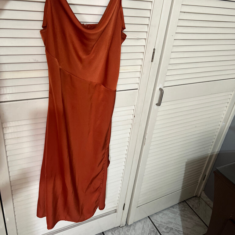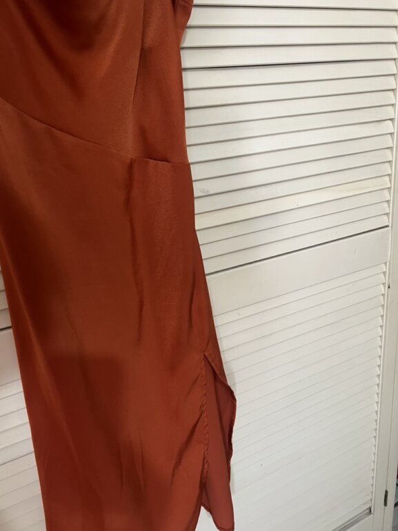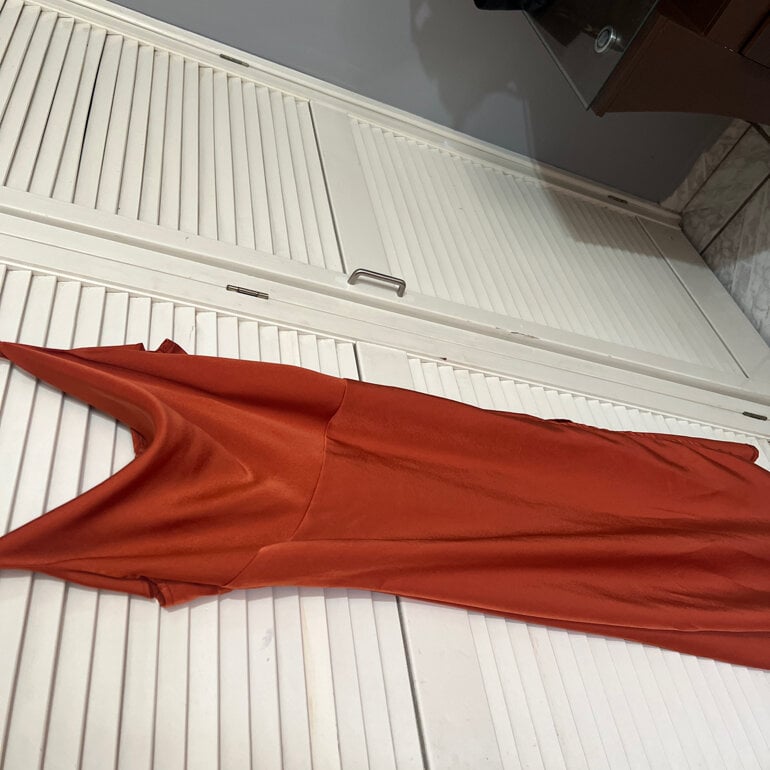 Es corto, con abertura en la pierna, yo soy M y me queda un poquito apretado de la parte de las caderas