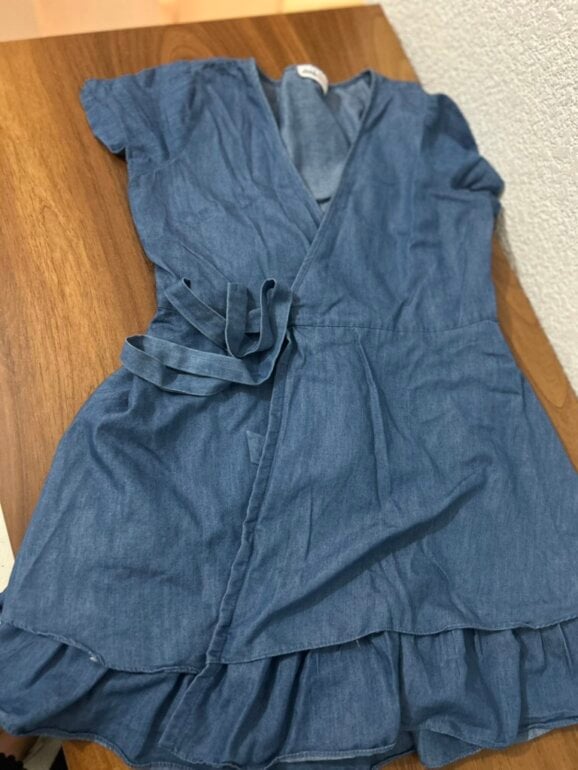 Bonito vestido con olanes color mezclilla