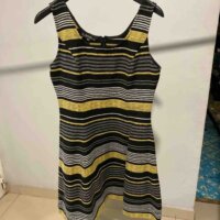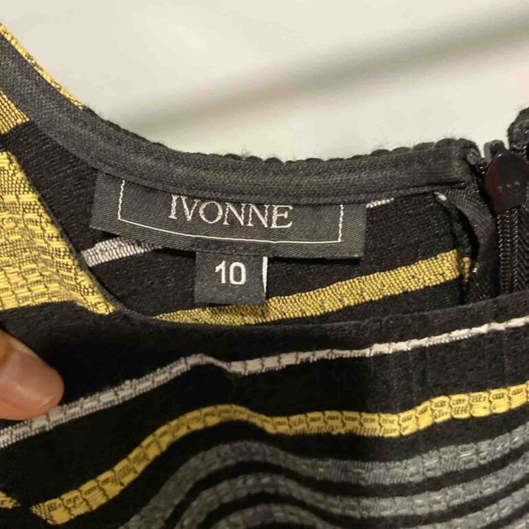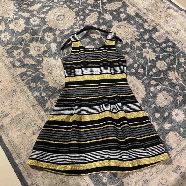 Vestido Ivonne talla 10, con hermosas líneas doradas, queda hermoso es corto a media pierna