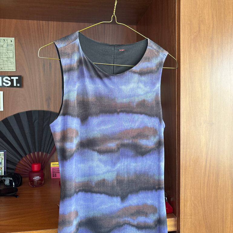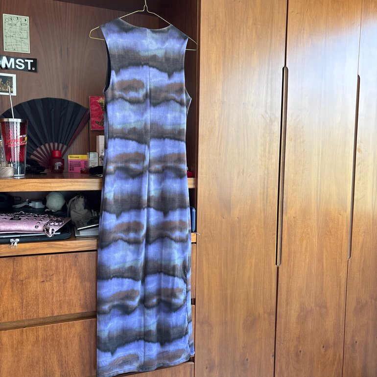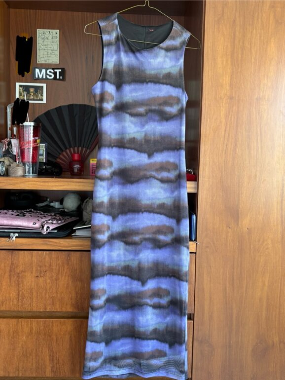Vestido largo súper lindo y cómodo, la tela es elástica pero te hace muy buena figura, estira, es talla M