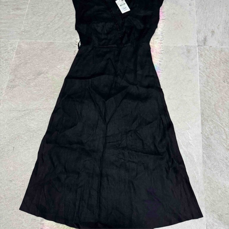 Talla S se le perdió el cinturón de tela pero puedes ponerle uno o sin se verá muy bonito te hace cintura se cierra por detrás, tiene detalles elegantes de calado.