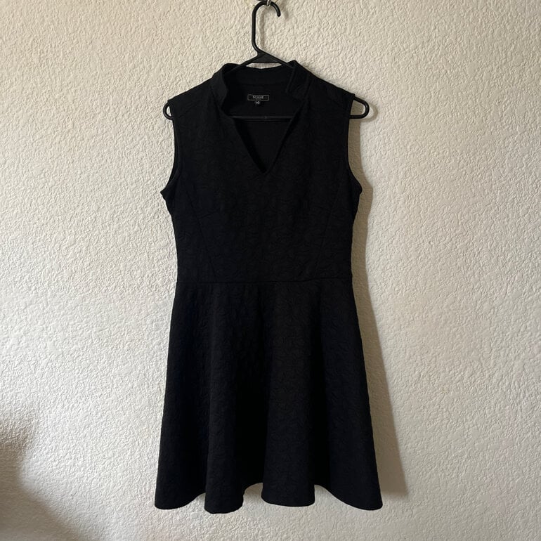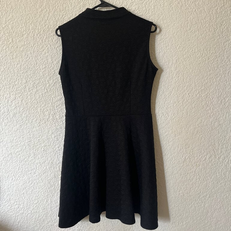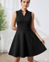 Vestido con cuello y falda con vuelo, tipo circular o skater. Muy favorecedor. Tienen pinzas en la parte de adelante y en la espalda. Medidas aprox: axila a axila 49 cm, cintura 41 cm, largo 86 cm. Muy bonito vestido, sin detalles visibles, entrego limpio 🧼 ya no cuenta con etiqueta pero la tela me parece algodón + poliéster. Es suave y gruesa. La primer imagen fue generada con IA 🤖 p/ ejemplo