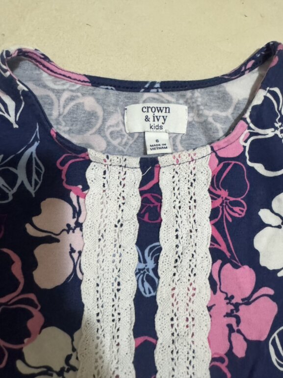 Vestido de niña mangas 3/4 estampado en flores talla 6 marca Crow &ivy