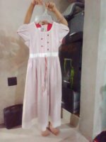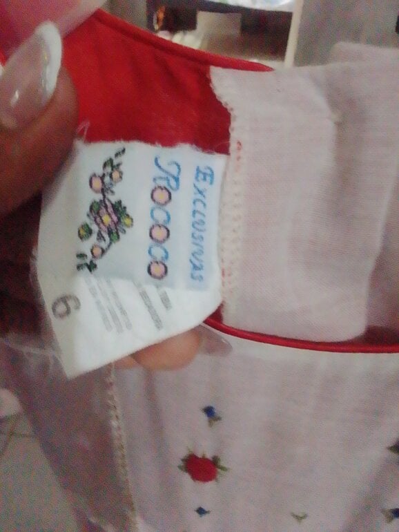 Vestido rojo con blanco para niñas de 6años en adelante semilargo . Tiene detalle de flores pequeñas de color rojo y unos listones de colores