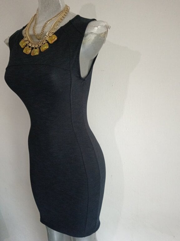 Bonito Vestido elegante de excelente calidad, la tela estira bien, se ajusta cómodamente al cuerpo, cuello redondo, sin mangas