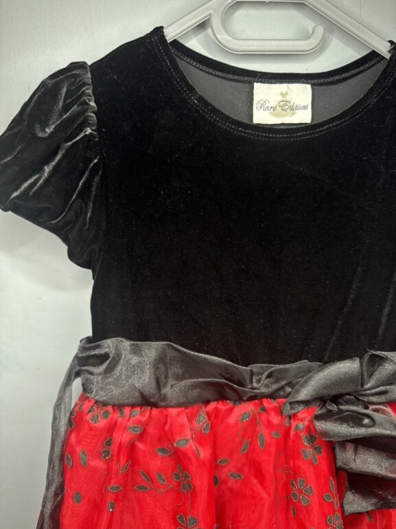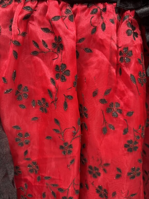 Vestido de terciopelo, con detalles florales en la parte de abajo.