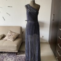 Hermoso vestido de un solo hombro con transparencia en falda y short debajo. Súper cómodo y elegante!!... NUEVOOO!! Talla 10 (M/L).