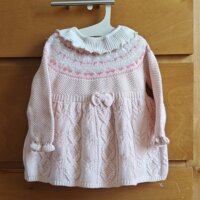 Dos prendas. Vestido tejido de punto y blusa con cuellito.