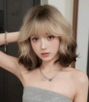 Peluca cafe degradado ondulada corta