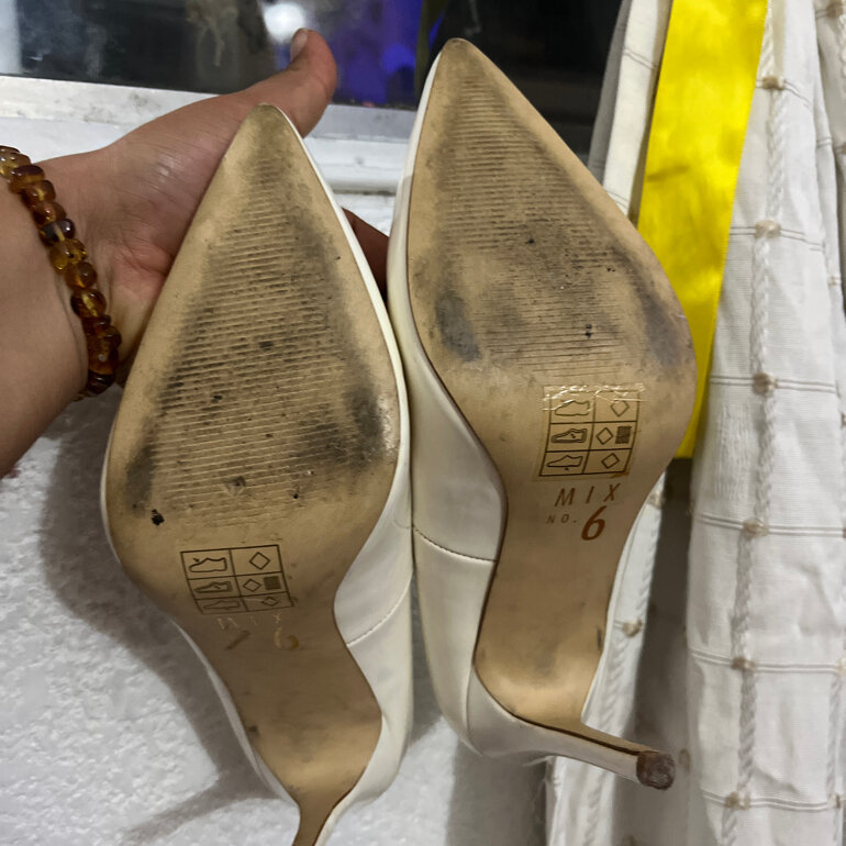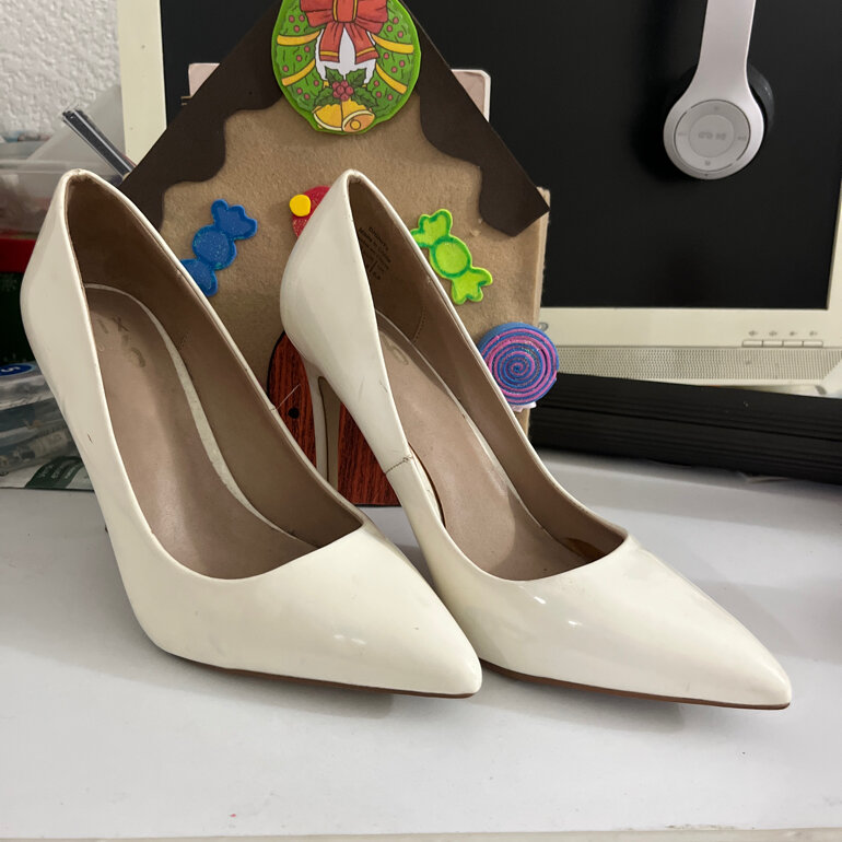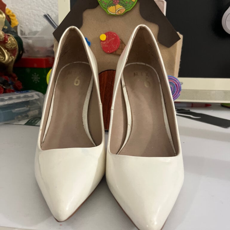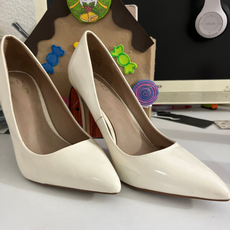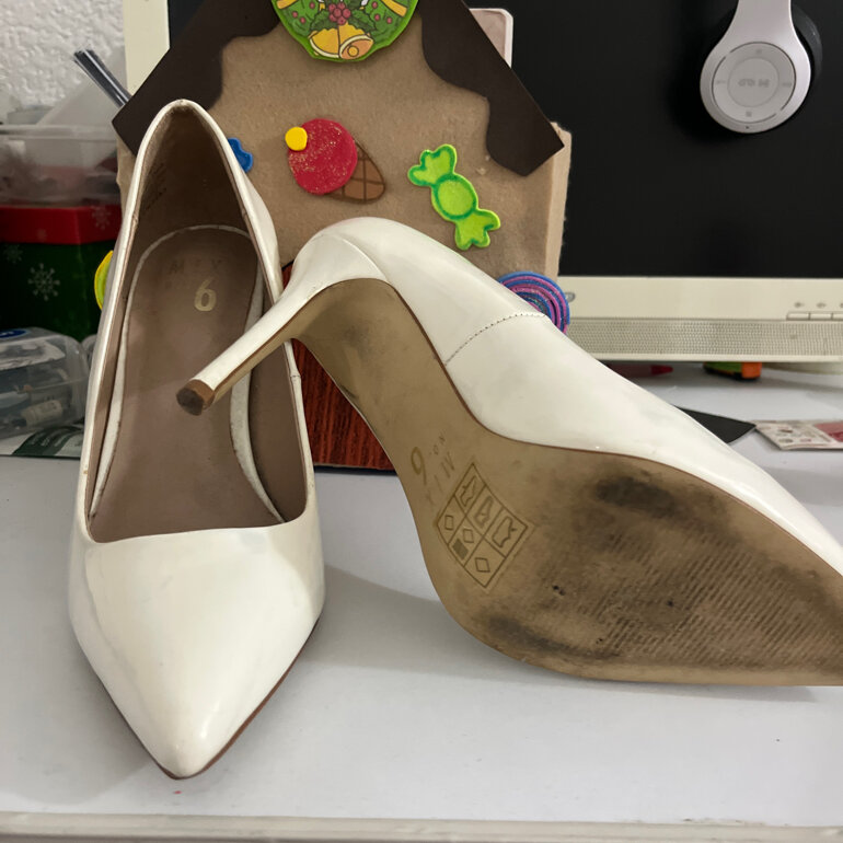 Zapatillas blancas 5.5, tacón de 11cm de alto tiene una spequeña mancha azul