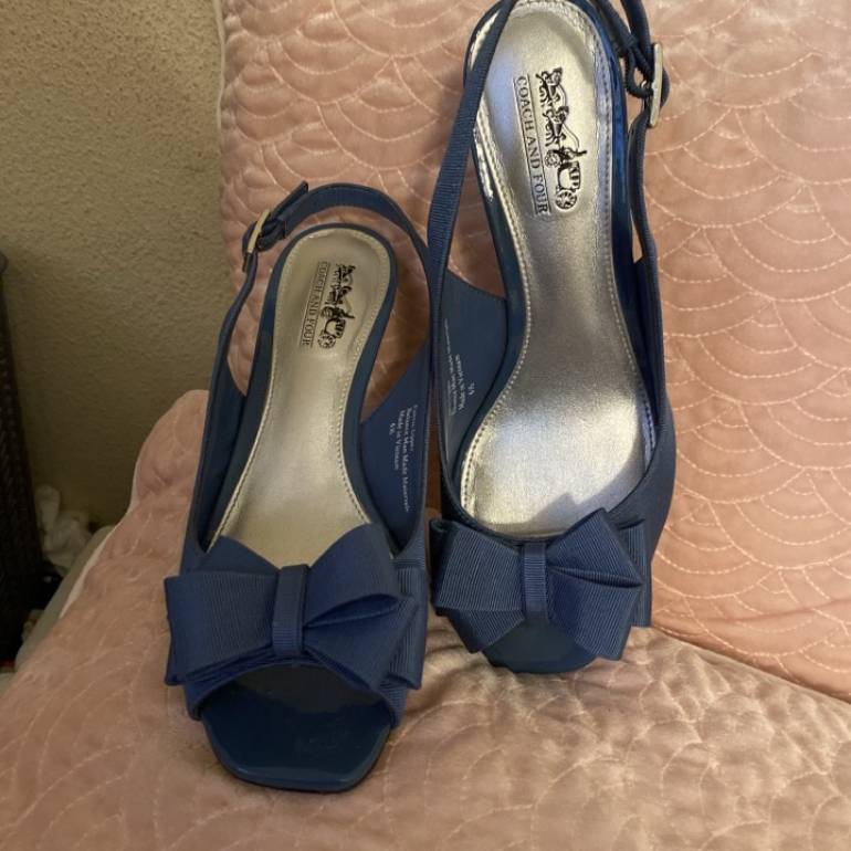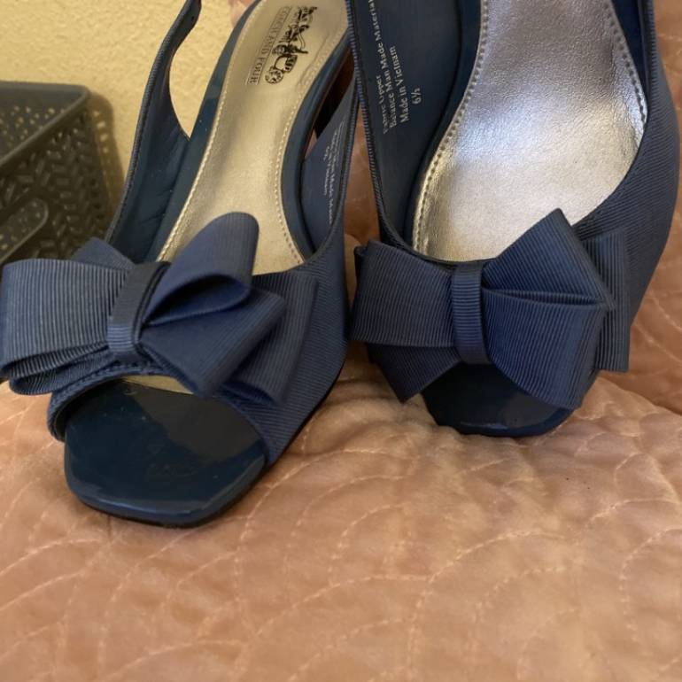 Disponible a partir del 18 de Abril, Zapatilla Coach muy bonita y elegante de razo azul tacon mefiano comodo, tiene un raspon en el tacon como se ve en una foto, una gran compra si comparas precio