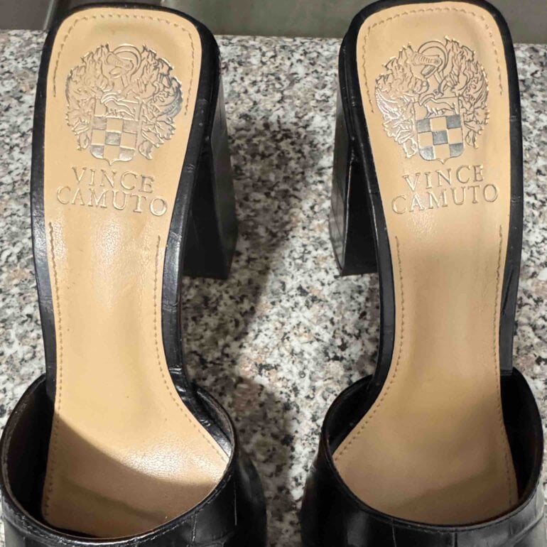 Hermoso zapato de tacón ancho abierto con diseño a cuadros