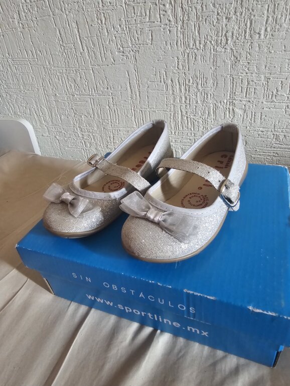 Zapato plateado de brillo talla 15-16 sin detalles, una puesta