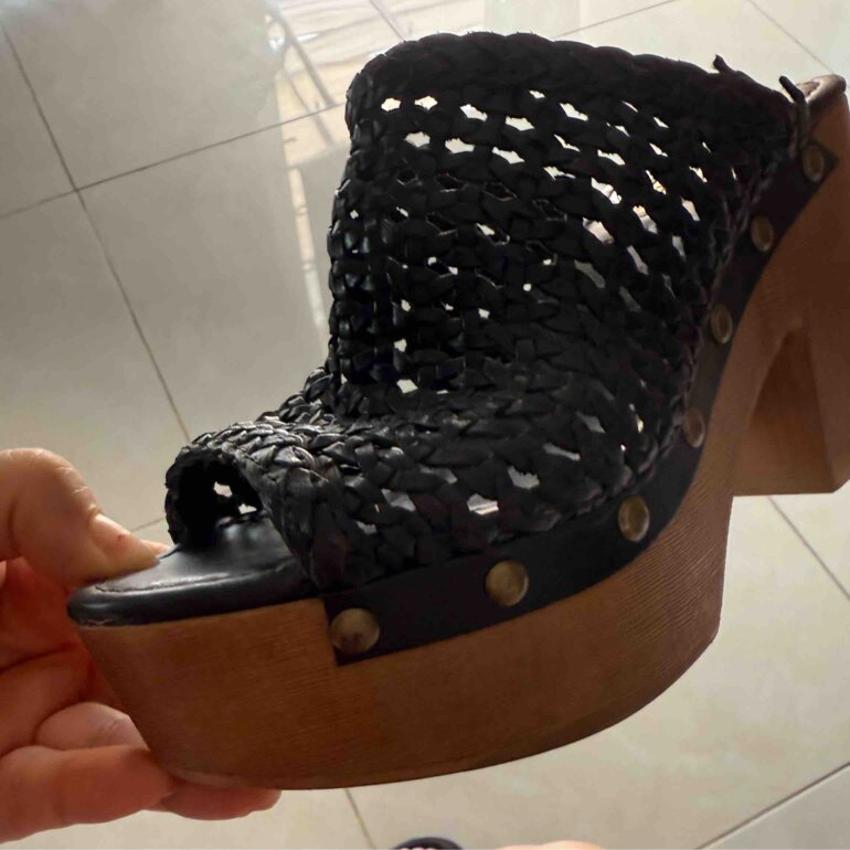 Hermosas plataformas con tejido color negro, muy cómodas.