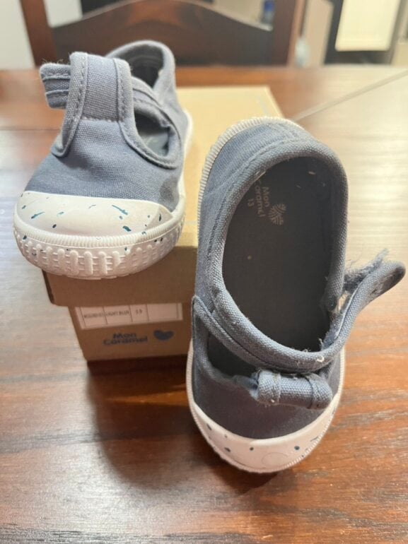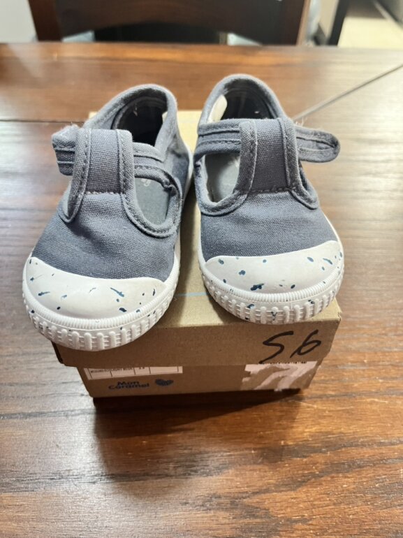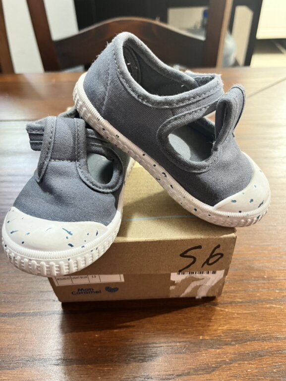 Zapatitos color gris con blanco y jaspeado talla 13 cm para niña marca Mon caramel , con muy poco uso y solo se descosió uno de los velcros, si lo tiene pero está despegado y con unas puntadas queda como nuevo. PRECIO FIJO