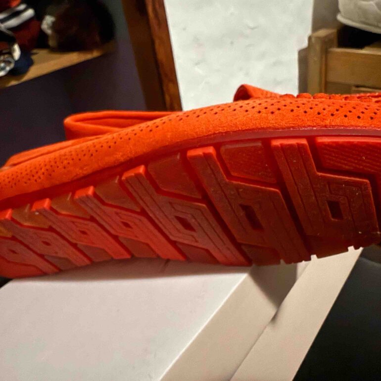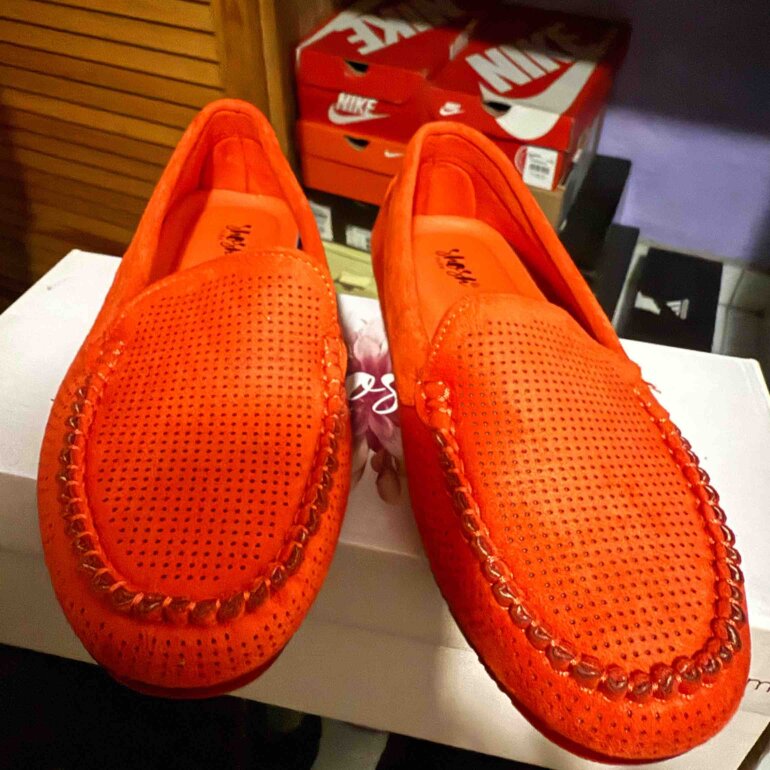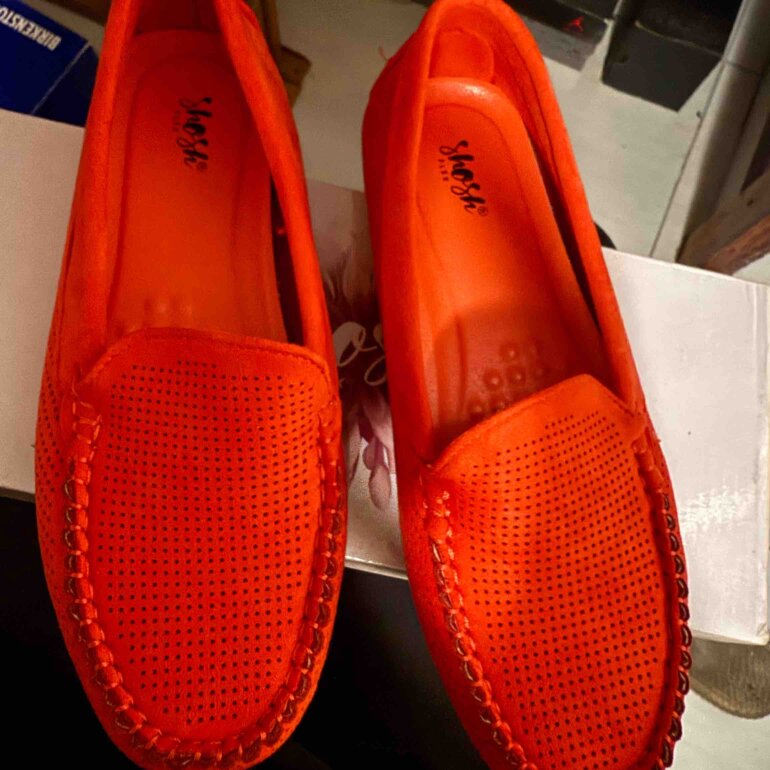 Zapatos mocasines muy cómodos de material gamuza con suela transparente y color naranja, están nuevo solo se usaron para medirse los