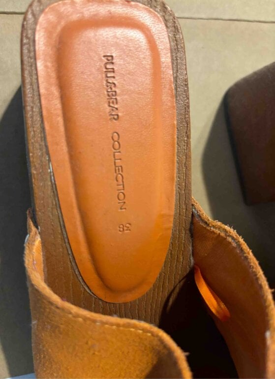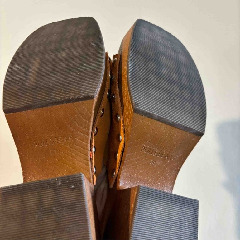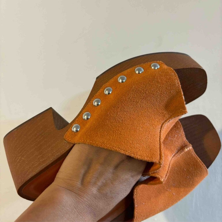 Zueco de madera y gamuza naranja,excelente estado 38(4.5-5 Méx)
